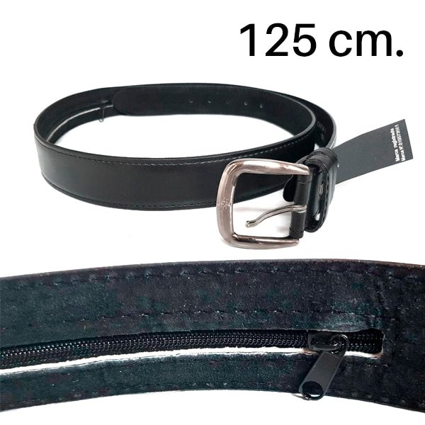 Cinturón muy útil para poder guardar tus billetes en su interior de una forma segura y discreta.Largo del cinturón: 125 cm.
